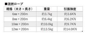 水に強い。ポリエチレンとビニロンを混撚した軽くしなやかなロープです。